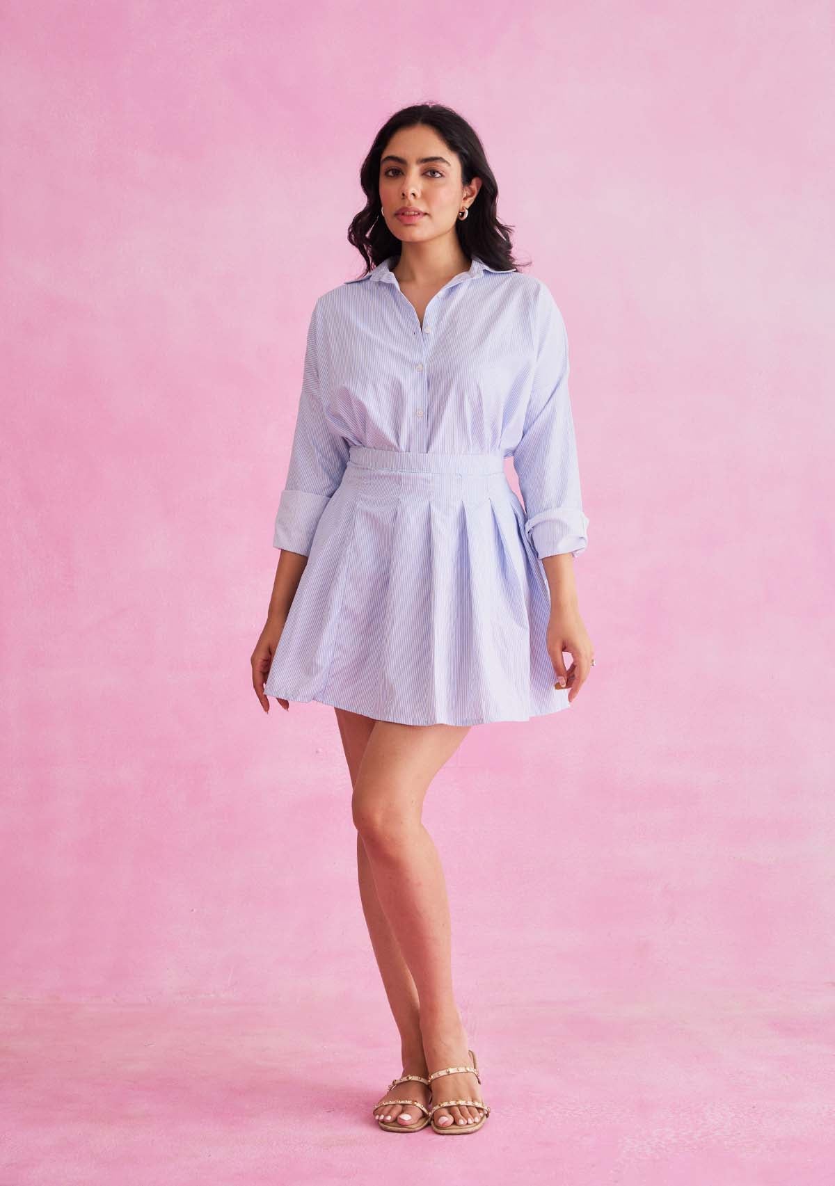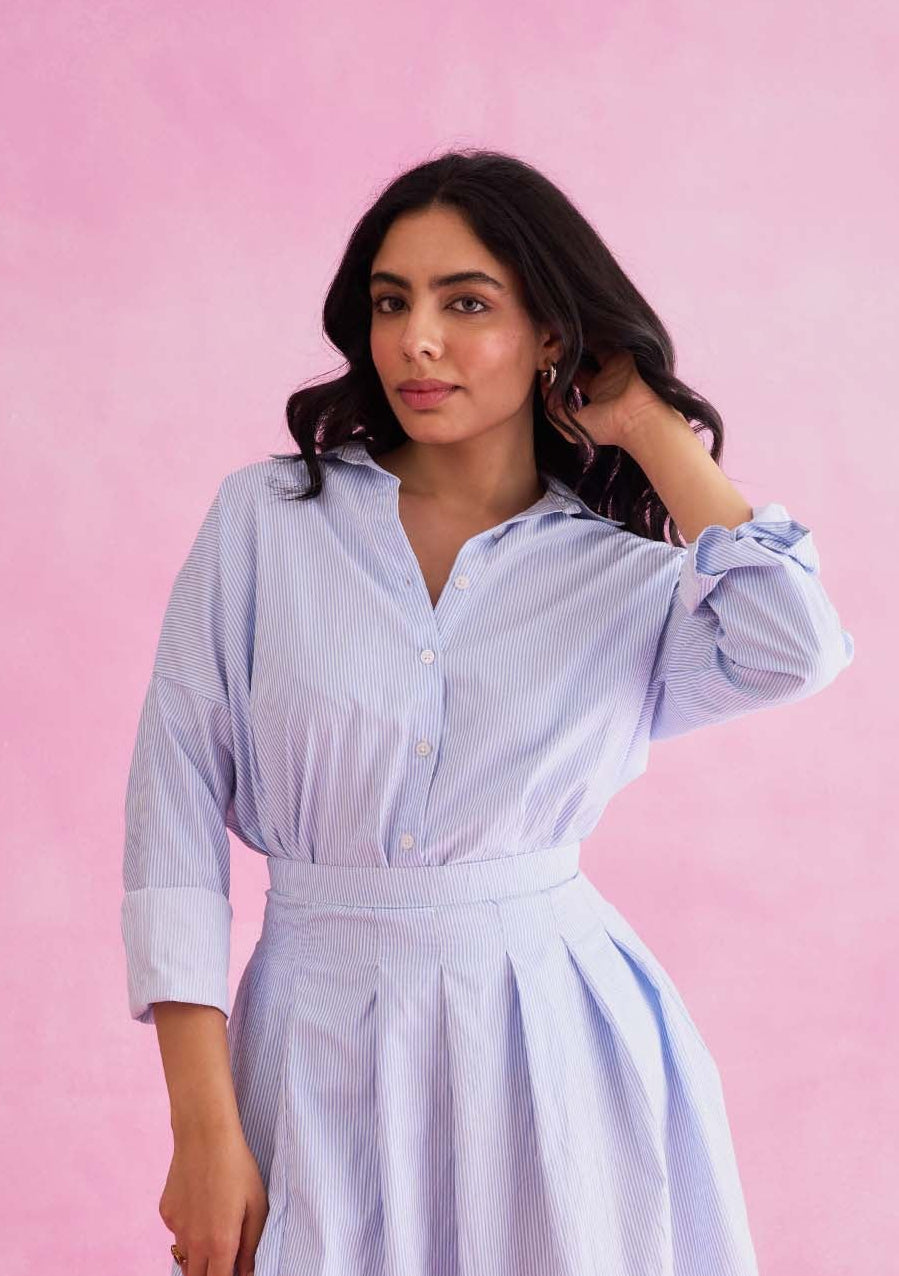 The Carla shirt is made in a comfy cotton-poplin, that can be worn in so many ways. Featuring stripes all over, wear to work with high-waisted pants or style with the Carla skirt for an elevated weekend look.